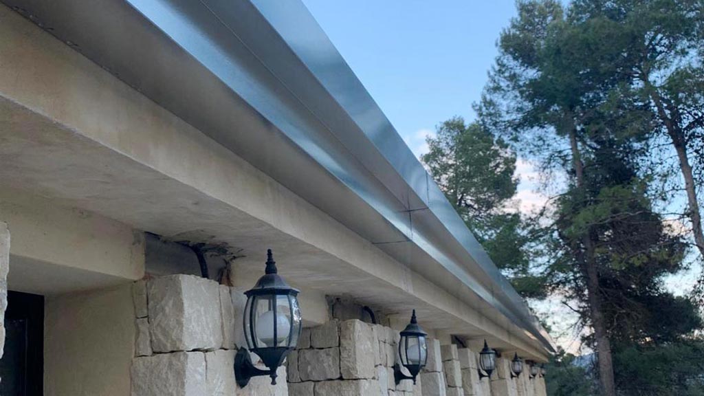 Ofrecemos la posibilidad de fabricar según el diseño que desee canales y rematería hasta 1.250 mm. de desarrollo y un largo máximo de 6 Mts con chapa galvanizada de 0,6 ó 0,8 mm. de espesor y chapa prelacada en varios colores estándar de 0,6 mm. de espesor.